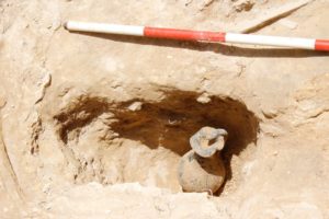 “Si trattava – spiega la Soprintendenza – di una fossa in nuda terra nella quale erano stati deposti in momenti successivi tre individui, rinvenuti ancora in connessione anatomica. La sepoltura, risalente con ogni probabilità all’Età romano-repubblicana, ha restituito ben 4 monete non ancora leggibili ed una lucerna a pasta grigia. Una volta rimossi gli scheletri, sono venute alla luce quattro controfosse all’interno delle quali erano stati deposti i resti degli inumati sepolti in precedenza e alcuni oggetti di corredo: in particolare, oltre ad una trozzella e ad un vasetto miniaturistico acromo, forse inquadrabili nel III a.C., all’interno di una delle fosse era stata sepolta con cura una oinochoe (un contenitore per mescere il vino) di grande bellezza, con corpo baccellato, databile ad epoca ellenistica. Il contesto sembra testimoniare il riuso di una fossa sepolcrale da parte di un gruppo famigliare che ha tramandato la propria memoria lungo almeno due secoli, dall’età definita messapica, per la presenza della popolazione autoctona, all’epoca della dominazione romana. Gli scheletri rinvenuti all’interno della sepoltura nei prossimi mesi saranno oggetto di uno studio archeoantropologico approfondito, finalizzato a chiarire gli aspetti legati all’età/sesso dei defunti, alle condizioni di vita e alla presenza di eventuali indicatori di legami parentali che possano confermare la presenza di individui appartenenti al medesimo gruppo famigliare”.
