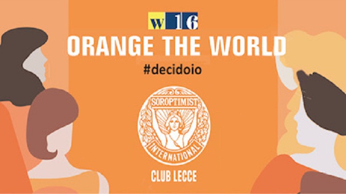 Anche quest’anno il Soroptimist International Club Lecce sostiene la campagna mondiale “Orange the World to Stop Violence Against Women” per l’eliminazione della violenza di genere e quella nazionale rilanciando l’ashtag #DECIDOIO.