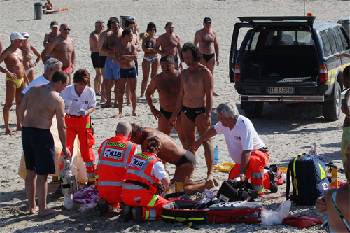 Dalla spiaggia un capannello di curiosi assiste impotente alla scena. Nel frattempo arrivano i mezzi del 118, gli uomini della guardia costiera, la polizia municipale. Il padre coraggioso, non senza difficoltà, viene trascinato a riva sempre dallo stesso gruppo di surfisti. Medici ed infermieri si danno da fare per rianimarlo, ma purtroppo senza successo. Il suo cuore non torna a battere.