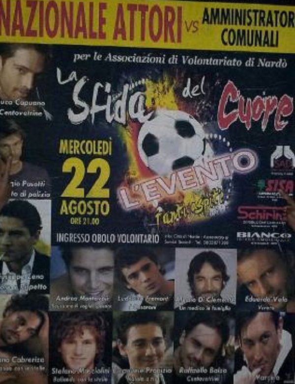 NARDO’ (LE) – Ciak! Si…segna! A Nardò, presso l’impianto sportivo ‘Europa Sport’, è andata in scena (è il caso di dirlo) ‘La Partita del Cuore’ che ha visto misurarsi una rappresentativa della locale amministrazione e la Nazionale Attori.