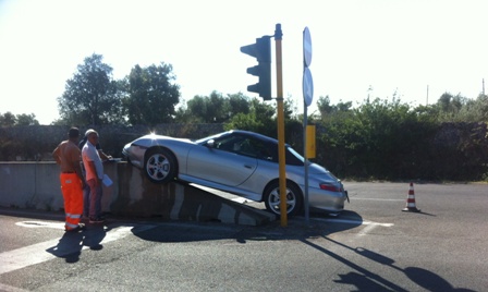 LECCE – All’ottavo chilometro della strada che collega Lecce alla marina di S.Cataldo, alle 9.25 si è verificato un impatto fra una Porsche e un mezzo della Sgm. Per fortuna nessun ferito e nessuna grave conseguenza, solo tanta paura per il guidatore della Porsche anche a causa della posizione in cui si è ritrovata sul guardrail.