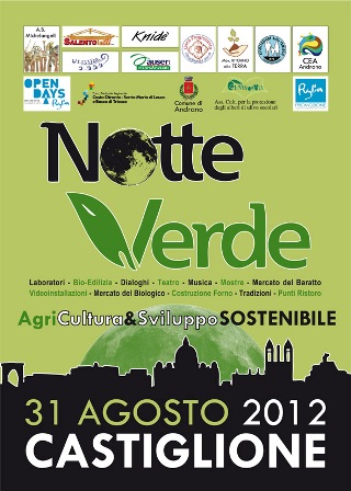 CASTIGLIONE D’OTRANTO (LE) – Un vero e proprio ‘ritorno alla terra’ si preannuncia a Castiglione d’Otranto con la ‘Notte Verde’ che venerdì 31 agosto alle ore 20.30, promette di riempire il borgo di contenuti e riflessioni dedicate al bio, nelle sue diverse declinazioni che vanno dall’agricoltura all’edilizia, dalla cultura alla strategia ‘rifiuti zero’.