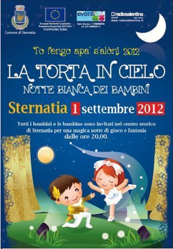 STERNATIA (LE) – ‘La Torta in cielo – Notte bianca dei bambini’… Basta il nome della manifestazione a far sognare un mondo da favola, in cui ai più piccoli tutto è concesso. Si respira magia nel centro storico di Sternatia: gonfiabili, pagliacci, giocolieri e pirati, in una serata lunga un sogno.