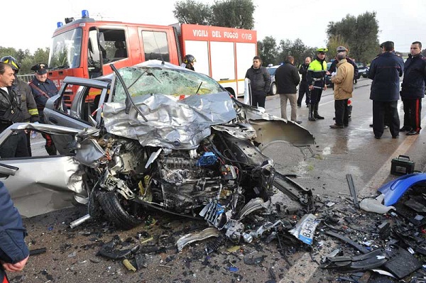 Nell’impatto, violentissimo, perdono la vita i due conducenti e Anna Capobianco, 43anni, e la figlia Marisabel Di Castri, 17enne. Gravemente ferita la figlia della Di Giuseppe, la 18enne Valentina Zaccaria, trasportata prima al ‘Perrino’ e ora al ‘Vito Fazzi’ di Lecce, in Rianimazione.