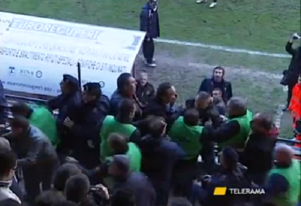 Nessun ferito per fortuna, grazie al pronto intervento degli agenti riusciti a bloccare in tempo lo scontro. I disordini sugli spalti hanno indotto, comunque, l’arbitro a interrompere l’incontro. Ora le indagini sono in corso. I responsabili dei disordini sono già stati identificati e molto presto scatteranno i provvedimenti, denunce e DASPO. Spalti violenti , ancora una volta, che macchiano quello che sarebbe dovuto essere un tranquillo pomeriggio di sport.