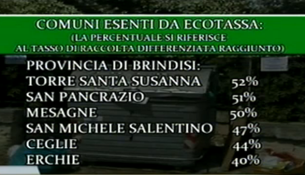 Nella Provincia di Taranto saranno solo 2 i Comuni sui quali non si abbatterà la stangata e sono Monteparano – che detiene il record in tutta la Puglia con il 68% di raccolta differenziata – e Montemesola con il 47. Dunque, su 29 Comuni se ne salvano solo 2.