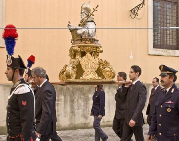 Un mezzobusto che ritrae il Santo protettore al quale la città è devota da secoli che viene portato in processione nei giorni della festa. Il furto probabilmente è avvenuto tra le 10.00 e le 11.30, di sabato, successivamente alla celebrazione della messa.