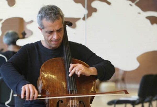 Secondo giorno di prove per il violoncellista siculo di fama mondiale. Secondo giorno in cui ha imbracciato il suo amico di sempre, il violoncello, e si è lasciato trasportare dai suoni che piano piano si fondevano nella sua mente e si traducevano in un’unica architettura musicale.