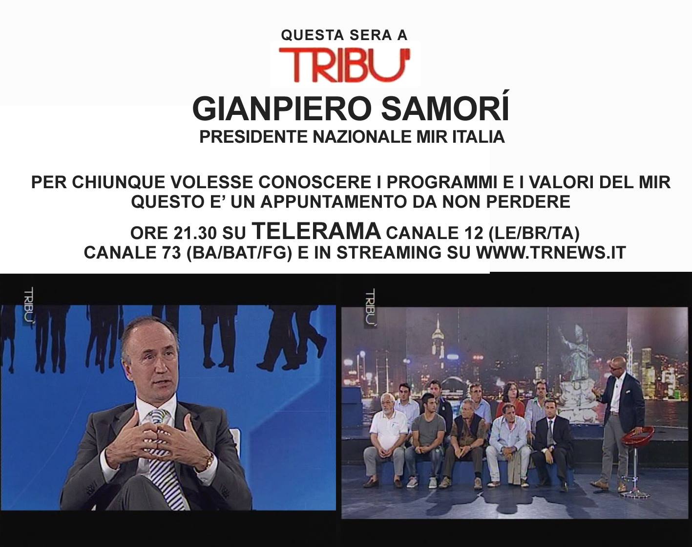 Alle 21.30, torna “Tribù”: ospite il leader nazionale del Mir Gianpiero Samorì