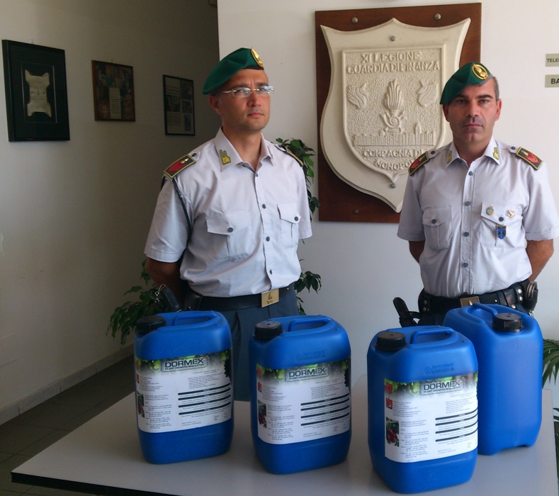 L’operazione si è conclusa con il sequestro di 53 taniche contenenti 800 liti di tale sostanza, un centinaio di etichette contraffatte. Denunciati all’autorità giudiziaria i due commercianti.