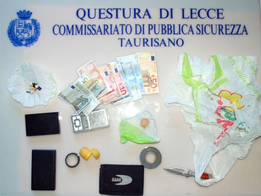 TAURISANO- Un arresto per droga è stato eseguito, a Taurisano, dagli agenti del locale commissariato. Ai domiciliari è finito un 21enne originario di Ugento, Giuseppe Pezzulla trovato con dell’eroina addosso.