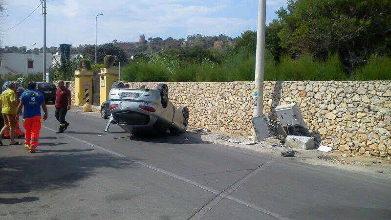 GALLIPOLI- Incredibile incidente avvenuto a Lido Conchiglie, di fronte al noto ristorante La Maruzzella. Un’auto, dopo aver sbandato e colpito un armadietto dell’enel si è capovolta.