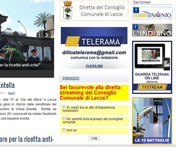 LECCE- Sul sito trnews.it va avanti il sondaggio sui nuovi assetti territoriali all’indomani della chiusura delle province si apre il dibattito sul neoregionalismo: regioni più piccole e abolizione degli enti intermedi (per ridurre i costi della politica). Quale assetto daresti alla Puglia per rendere l’ente regionale più vicino al cittadino? Ve lo chiediamo sul sito trnews.it. Il 58% ha votato per la Puglia divisa in 2 con Regione Salento (br-le-ta) e Regione Federiciana (Ba-Bat-Fg). Il 25% per la Puglia divisa in 3 regioni  come prevede la Società geografica Italiana (Br-Le-Ta; Bari e bat;  Fg-Cb) in un progetto di neo-regionalismo. Il restante 17% ha votato per la Puglia cosi com’è, con Bari città metropolitana.