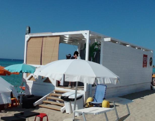 Oasis: pedana con struttura sopraelevata con chiosco e due bagni chimici. Sulla spiaggia, ad un metro dal mare.