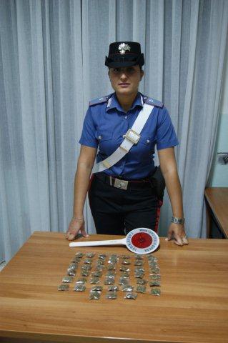 Da qui la decisione di far intervenire il cane pastore tedesco IKE, presente nella zona per supporto al servizio di cui sopra. Dall’accurata ricerca svolta nell’area dove era seduto lo spacciatore, fiuto del cane carabiniere ha permesso di rinvenire, occultate sotto una pesante pietra e sommerse nella sabbia sottostante altre 2 buste di sostanza stupefacente contenenti altre 48 dosi per un contenuto complessivo di più di 80 ulteriori grammi di marijuana.
