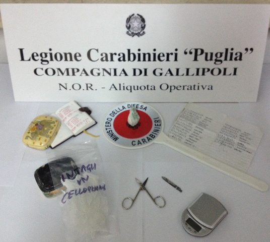 MELISSANO- Spacciava cocaina sia in casa, ricevendo i clienti, sia spostandosi a Gallipoli dove in spiaggia incontrava quotidianamente i suoi clienti. I cc tenevano sotto controllo Roberto Russo, 19 anni di Melissano da diverso tempo. Ieri pomeriggio è scattato il blitz in casa dopo l’arrivo dell’ennesimo cliente.