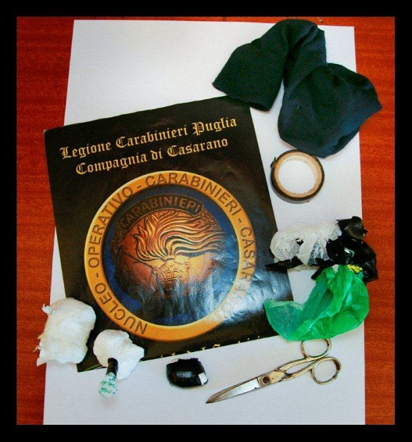 Nel corso della stessa perquisizione, è stata rinvenuta all’interno di un garage ubicato nelle vicinanze dell’abitazione del PROTOPAPA e nella disponibilità di quest’ultimo, in un calzino riposto su un suppellettile, della sostanza stupefacente del tipo “cocaina”, per totale di 70 grammi, inoltre presso l’abitazione veniva rinvenuto altresì materiale di confezionamento (forbice, nastro isolante e residui di sostanza da taglio).