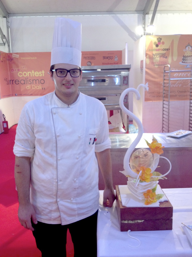 LECCE- E’ Giacomo Palma, il giovane pasticciere leccese di 24 anni, vincitore della seconda edizione del concorso “Dolci Talenti in Puglia 2013” rivolto a studenti e pasticceri under 25, organizzato da agrogepaciok, il salone nazionale della gelateria, pasticceria, cioccolateria ed artigianato agroalimentare che si sta svolgendo in questi giorni a Leccefiere.