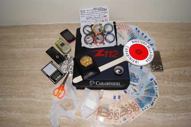 Nel corso del blitz, scattato nel primo pomeriggio, e protrattosi fino a sera, i Carabinieri hanno sequestrato, abilmente occultate in doppi fondi realizzati all’interno dei comodini nella stanza da letto ed in una credenza della cucina: 2 bilancini di precisione, 7 rotoli di nastro adesivo, un involucro contenente 40 grammi di eroina “BROWN-SUGAR”; un involucro contenente 15 grammi di cocaina, un pezzo di mannite di 30 grammi e 700euro in contanti.