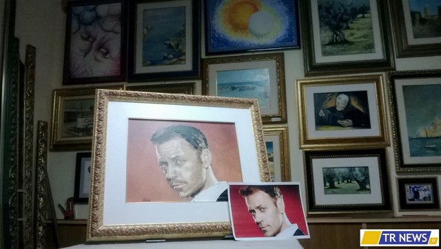 L’artista non immaginando minimamente a chi la foto appartenesse si è messo al lavoro. Una volta terminato il ritratto è finito in vetrina tra gli altri quadri : immagini di santi , scene bibliche e papi.