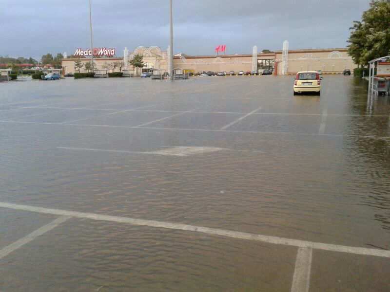 Qui la pioggia ha finito per allagare l’intero parcheggio. Al momento si registrano circa 15-20 cm di acqua. Praticamente allagato anche il sottopasso.
