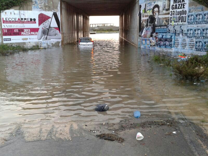 SURBO- Il nubifragio che in queste ore ha interessato il Salento ha praticamente sommerso paesi e città, generando diversi disagi come è accaduto nei pressi del centro commerciale di Surbo, “La Mongolfiera”.