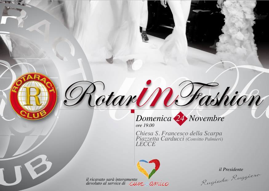 LECCE- Questa sera nella bellissima cornice di San Francesco della Scarpa appuntamento con la bellezza e l’eleganza.  Il Rotaract di Lecce ha organizzato una sfilata a scopo benefico. Il ricavato della manifestazione sarà infatti devoluto ai bambini della nuova edizione di Cuoreamico. Appuntamento quindi questa sera  nella meravigliosa San Francesco della Scarpa.