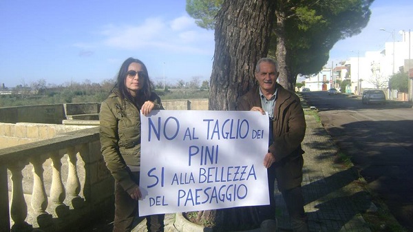 NOCIGLIA- Al via oggi i lavori per la costruzione della pista ciclabile della discordia, quella di Nociglia, dove sorgerà al posto dei 22 maestosi pini visibili anche dalla statale 275. Ieri, alcuni ambientalisti, per protesta, si sono incatenati agli alberi. Stamattina, prima dell’avvio del cantiere del comune, alcuni ciclisti hanno lasciato una bici accanto ad un albero, in segno di protesta.