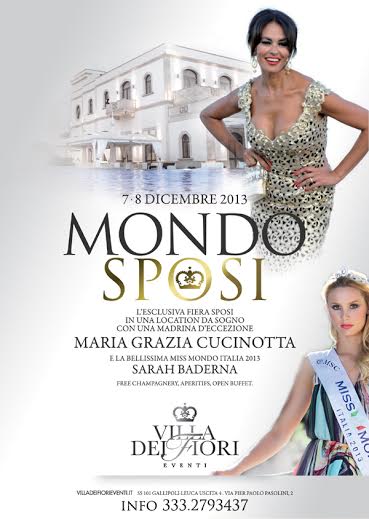 Tra le atmosfere magiche di Villa dei fiori, a Gallipoli, si uniscono la bellezza, con la finale regionale di Miss Mondo, ed il matrimonio, con tutto ciò che ruota attorno al giorno del sì. E’ Miss Mondo Sposi, l’evento più glamour, con musica e sfilate di alta moda per i visitatori, che hanno degustato l’aperitivo e poi il gran buffet di frutta e dolci…il tutto offerto dall’organizzazione.