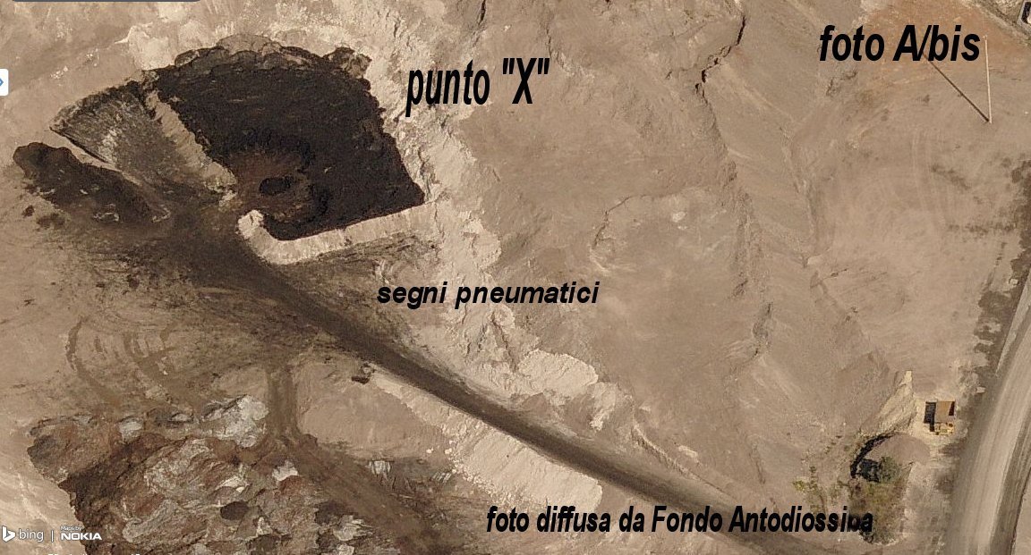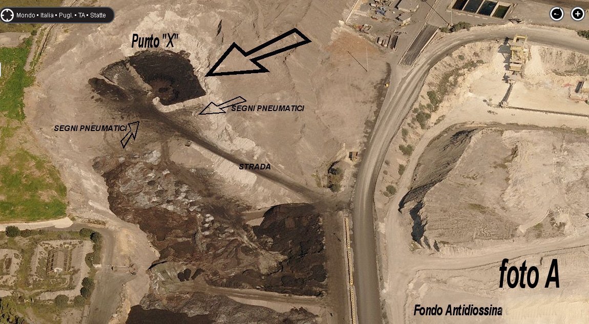 Il Fondo Antidiossina fa notare che dagli ingrandimenti delle foto in questione sembrerebbe che in alcuni punti «sia stato realizzato uno scarico a cui, sembrerebbe abbiano avuto accesso dei mezzi pesanti gommati (sono visibili, infatti, i segni dei pneumatici che lasciano pensare all’utilizzo di tale punto, quale recapito finale di rifiuti liquidi o fanghi di colore bruno di cui ignoriamo la tipologia)».