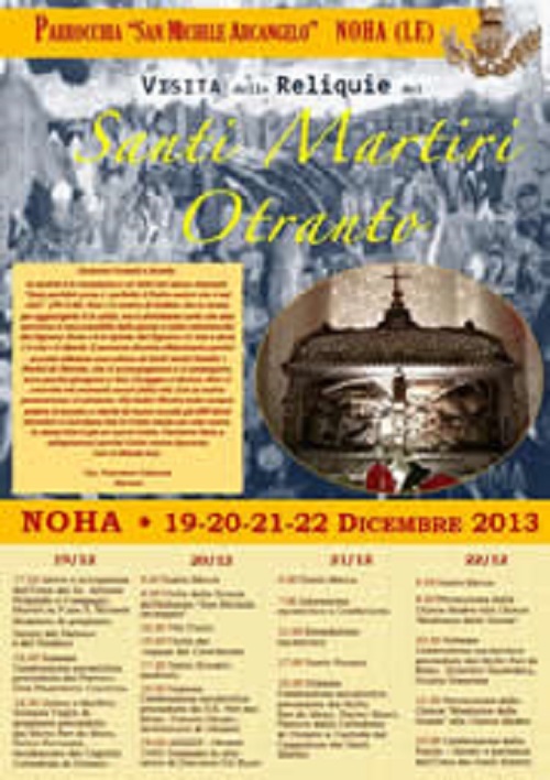 NOHA- Noha è di nuovo in festa: ad un mese esatto dall’arrivo delle spoglie di S. Gabriele dell’Addolorata, ora la comunità della frazione di Galatina si stringe intorno alle reliquie dei santi martiri di Otranto.