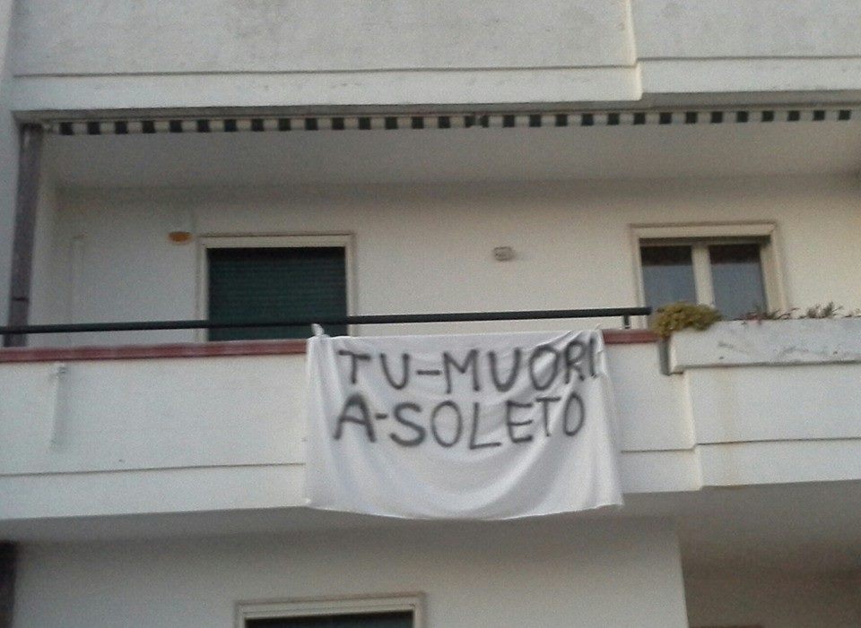 SOLETO- Cominciano già a comparire, uno dopo l’altro, gli striscioni appesi ai balconi delle abitazioni di Soleto. Lenzuola bianche con su scritto “Tu-muori a Soleto” oppure “Dio salvi il Salento” o “Avvelenati”.