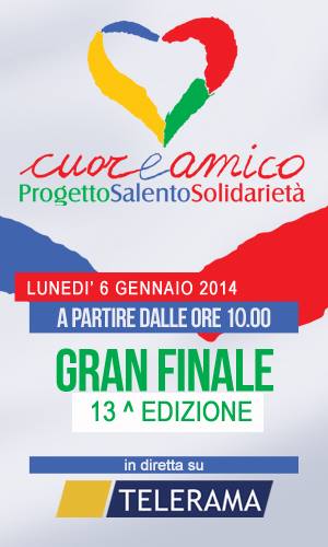 LECCE- Si terrà domani la lunga diretta per i bambini di Cuore Amico, che andrà avanti dalle 10 del mattino alle 13, e proseguirà dalle 16 alle 20. Parteciperanno le scuole, le associazioni, e le pro loco che hanno partecipato alla raccolta dei fondi. I salvadanai verranno aperti alla presenza dei big invitati in trasmissione.