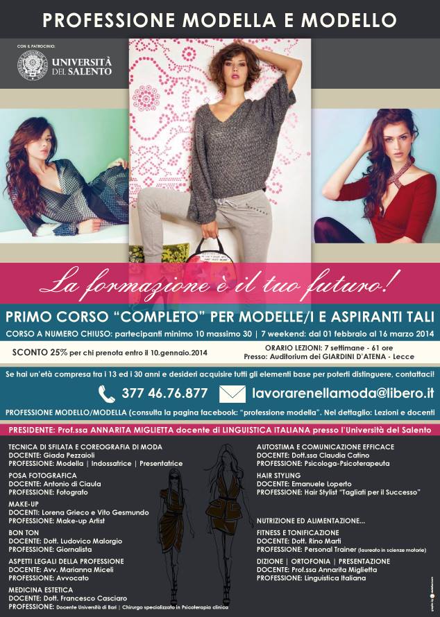 Il corso, ideato dalla top model Giada Pezzaioli e patrocinato dall’Università del Salento, sarà aperto a 30 partecipanti dai 13 ai 30 anni.
