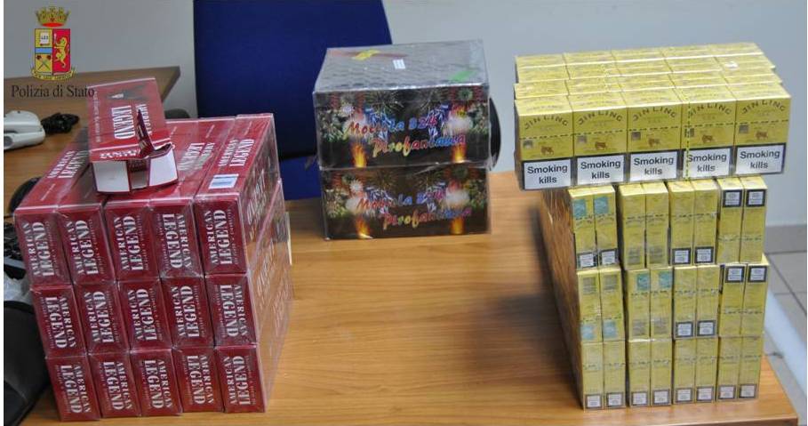 Ma non solo, in uno scantinato dell’uomo, i militari hanno rinvenuto 8 batterie di giochi pirici di 5^ categoria e circa 400 pacchetti di tabacchi lavorati esteri detenuti illegalmente .