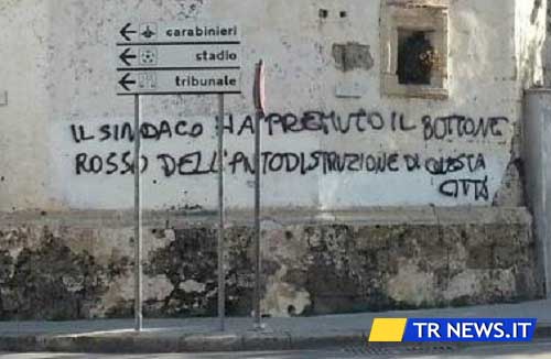 Scritte contro il sindaco di Nardò: “Schiaccia il bottone per l’autodistruzione della città”
