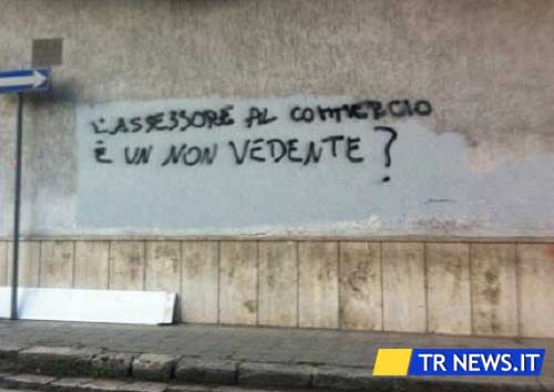 NARDO’- “Il sindaco ha premuto il bottone rosso dell’autodistruzione di questa città”, e ancora: “L’assessore al commercio è un non vedente?”. Questo il tenore delle scritte apparse ieri mattina su alcuni edifici del centro storico di Nardò.  Sono state fatte con una vernice nera, alcune su delle abitazioni, un’altra sul muro di una chiesa .