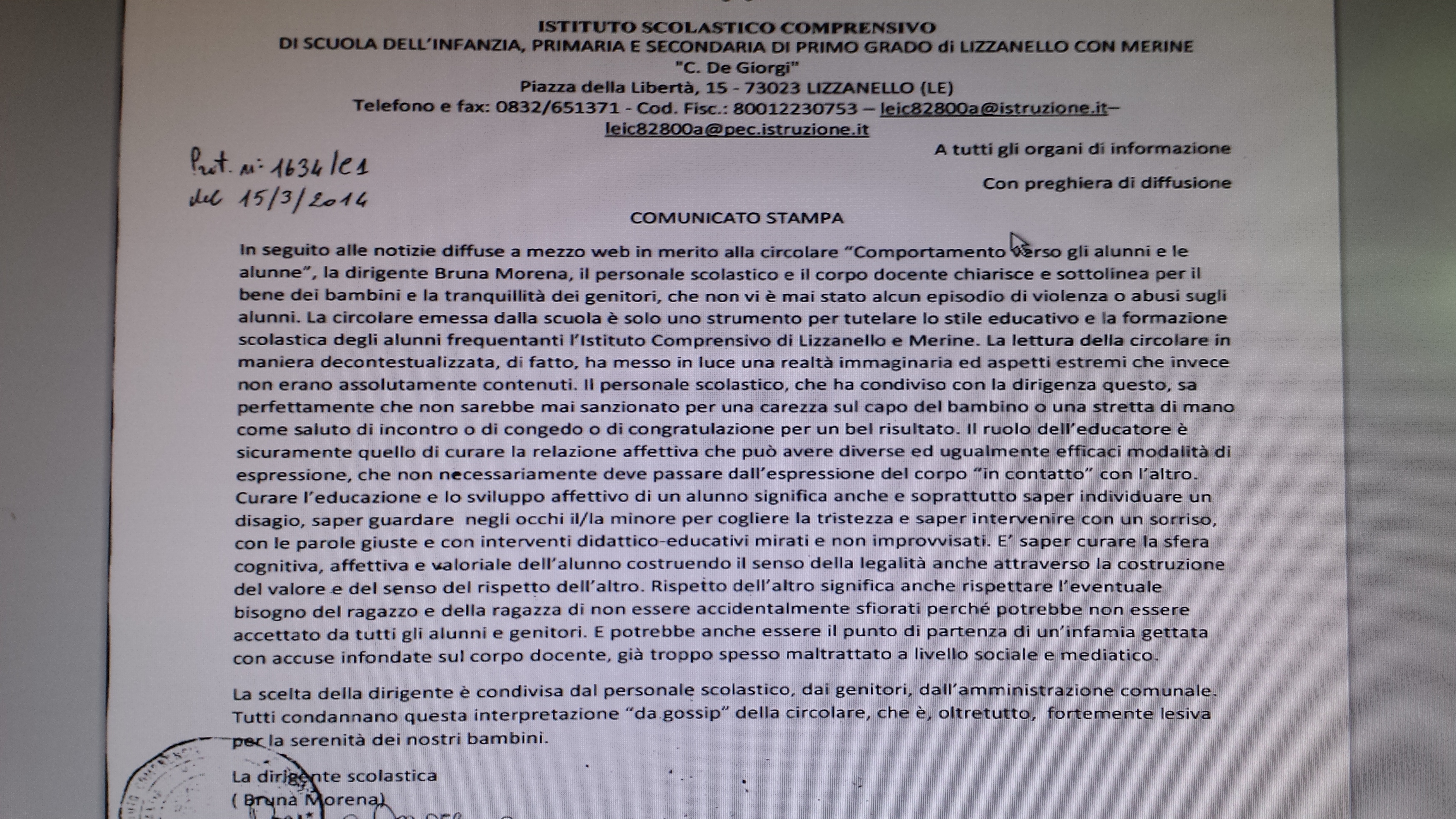 Di seguito la replica della dirigente scolastica di Lizzanello: “Lettura da gossip. Voglio solo tutelare uno stile educativo”: