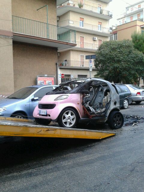 TARANTO- Tragedia sfiorata poco dopo le 18 in via Calabria a Taranto. Donna di 35 anni circa ha rischiato di morire carbonizzata. Era alla guida di una Smart rosa quando l’ auto ha preso fuoco. É stato un passante ad avvertirla permettendole di scendere in tempo dal mezzo. L ‘ incendio ha interessato anche due auto in sosta: una Fiat Punto e una Opel Astra.