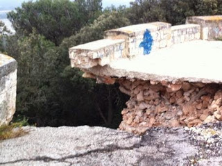 Qualche giorno fa, un pezzo di collina è franato  e quindi anche parte della struttura in cemento realizzata al di sopra si è letteralmente sbriciolata.
