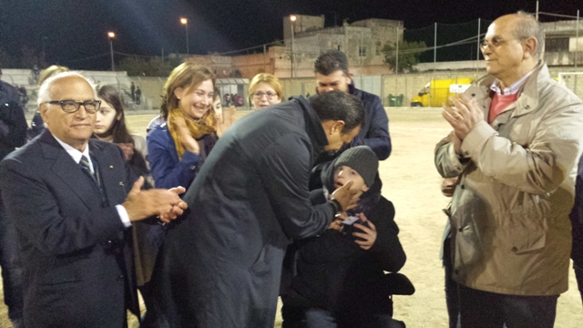Ma in questa magica serata, a dare una risposta decisa e forte , ci ha pensato ancora una volta CuoreAmico: il Presidente Onorario dell’Associazione salentina, il dottor Paolo Pagliaro, ha infatti donato un’auto attrezzata al piccolo Marco, un bambino diversamente abile che necessitava di un aiuto, di un sorriso un più. E così è stato: lì a centrocampo, insieme alla famiglia, ai suoi amici e al sindaco di Galatone Livio Nisi, il dottor Pagliaro ha lasciato nelle mani di questo piccolo angelo le chiavi della speranza e della grande solidarietà salentina.