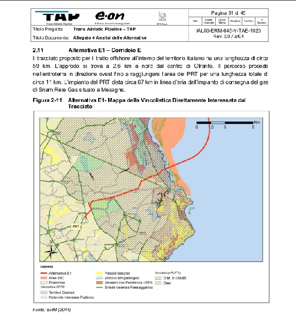 Tutto cade nel dimenticatoio,secondo la CP è tutto regolare,nessuno interviene. Ha fare chiarezza su quello che è veramente accaduto è la stessa TAP nell’allegato 4(analisi delle alternative) presentato come integrazione alle richieste del Ministero Dell’Ambiente. L’alternativa E1 prevede l’approdo esattamente nei punti da noi segnalati.