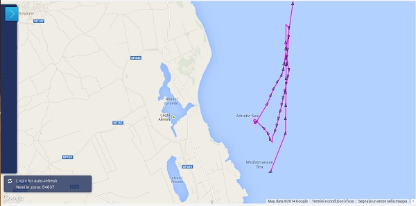 Le rassicurazioni sono le solite”era ormeggiata in quella zona”,ma il tracciato racconta altro,l’impressione e che l’unità di 46 metri abbia lavorato completamente fuori dai permessi dell’ordinanza 17/2014 nella zona a nord di Otranto.