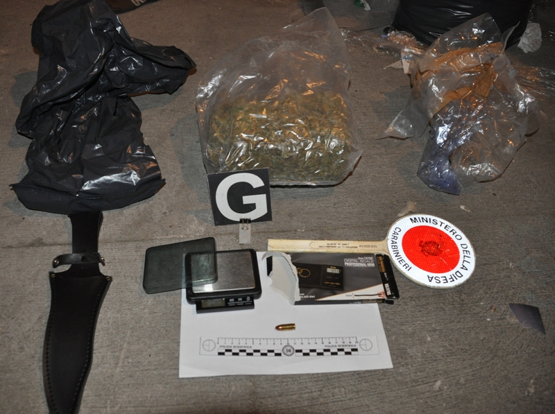 Non solo armi, anche un grosso quantitativo di droga in quel garage: 554 grammi di cocaina, oltre un chilo di marijuana, 126 di hashish, bilancino elettronico. In casa aveva altro materiale per il confezionamento.