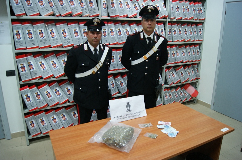 A seguito di una perquisizione domiciliare i militari hanno sequestrato  oltre un chilo di marijuana. Manca, su disposizione del PM, è stato  accompagnato in carcere, a Lecce.