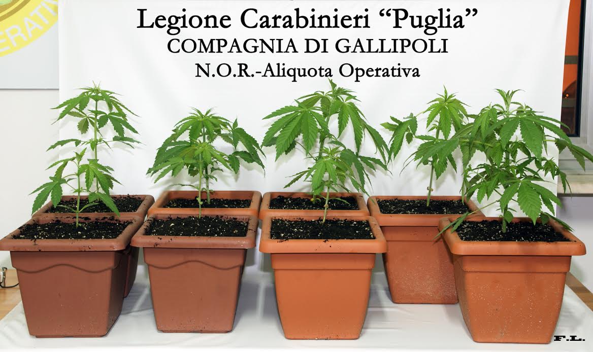 Quattro soggetti sono stati deferiti in stato di liberta’ per detenzione ai fini di spaccio di sostanze stupefacenti. Tra questi, un 28enne, membro di una nota band salentina, e’ stato trovato, a seguito di perquisizione domiciliare, in possesso di otto piantine di marijuana di un’altezza media di 35 cm oltre ad un involucro con altri due grammi della medesima sostanza.
