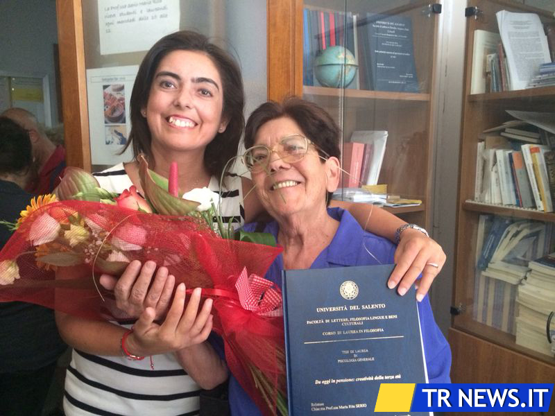 Circondata da nipoti e pronipoti che l’hanno sostenuta durante il suo corso di studi, nelle aule di palazzo Parlangeli Concetta ha discusso la sua tesi dal titolo: “Da oggi in pensione: creatività della terza età”, dimostrando agli uditori come gli 80 anni, lungi dall’essere l’età del declino, sono al contrario il punto di partenza per una nuova vita, fatta di impegno , valori, affetto e dedizione agli altri.