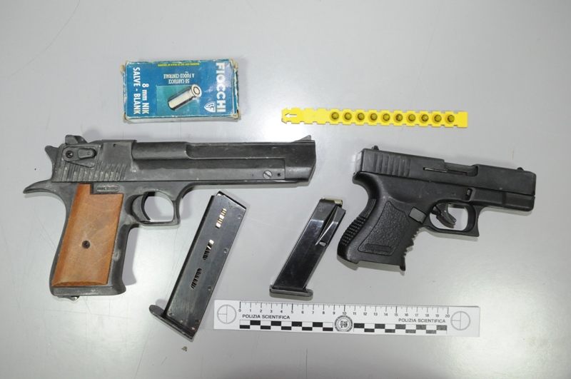 L’uomo era a bordo della sua motocicletta Honda di grossa cilindrata, quando gli agenti gli hanno chiesto di aprire il garage, ma lui ha tentato di depistarli. I poliziotti hanno proceduto alla perquisizione trovando, in un cassetto della camera da letto, due pistole semiautomatiche caricate a salve munite di caricatore e cartucce ed una scatola per munizioni calibro 8mm.