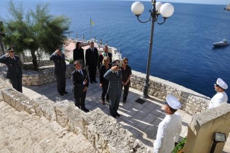 Un Reparto in armi ha salutato in forma solenne i Finanzieri di mare De Rosa e Zoccola che all’alba del 24 luglio 2000, erano imbarcati su una vedetta impegnata in un’operazione di contrasto al traffico di migranti nelle acque del Canale d’Otranto, per cui si posero all’inseguimento di un gommone albanese dal quale erano appena sbarcate numerose persone.