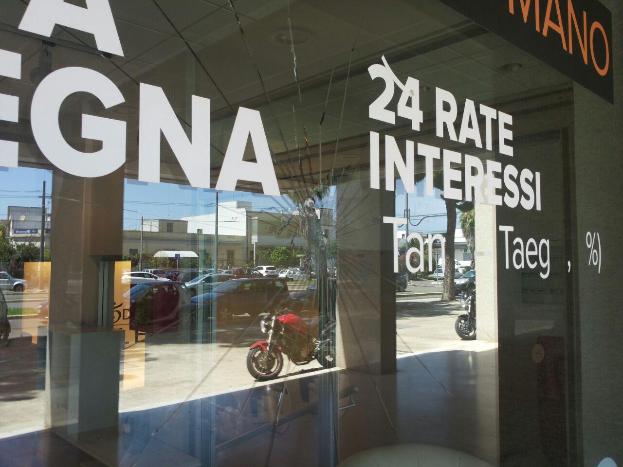 LECCE- Vetrine prese a sassate in piena notte, a Lecce. Una sorta di tiro al bersaglio contro le vetrate del negozio Divani e Divani, in Viale Leopardi.